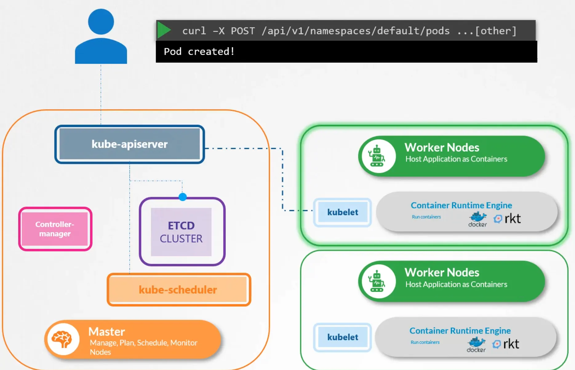 ๋ น์ ์คํํ๋ฉด kubectl utility๊ฐ kube-apiserver์ ๋๋ฌํจ