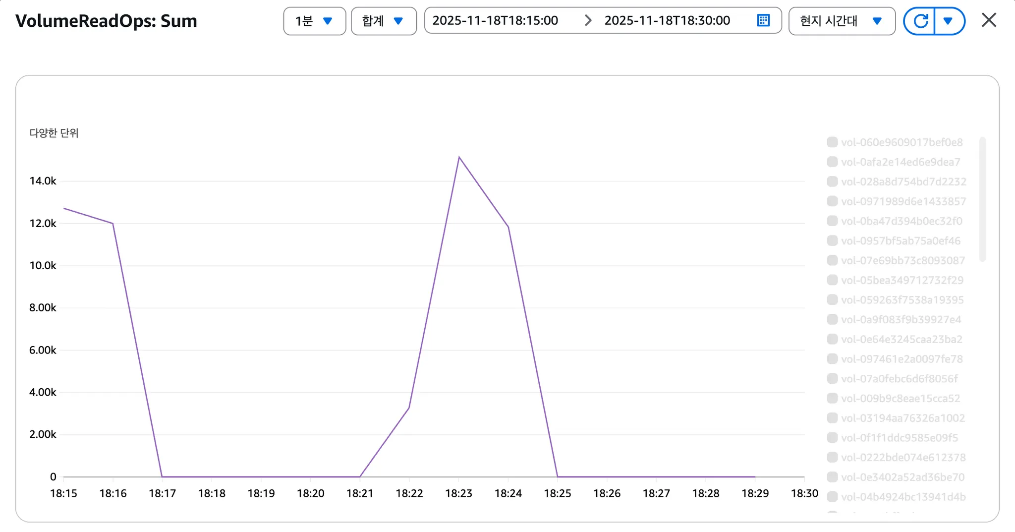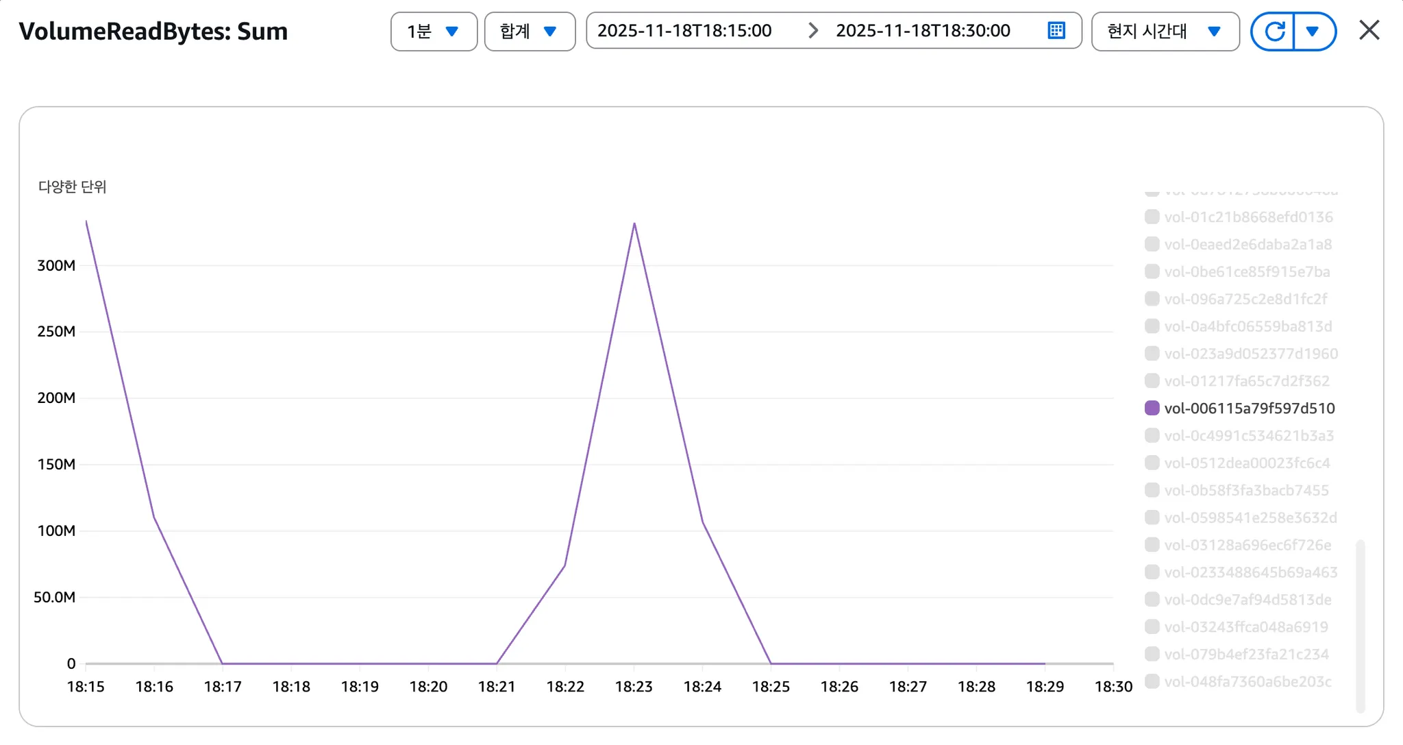 VolumeTotalReadTime | μ΅λ 119μ΄ | νκ· 5~9ms μμ€ | μ½ 13,000λ°° κ°μ |