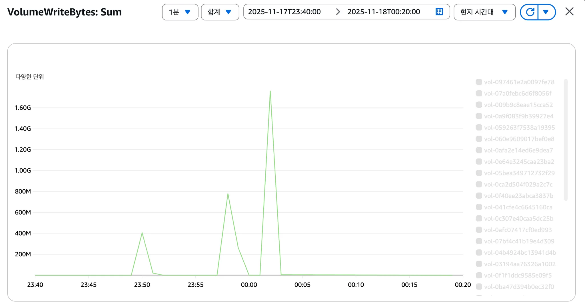 1) VolumeReadBytes / WriteBytes (๋ฐ์ดํฐ ์ ํญ์ฆ)